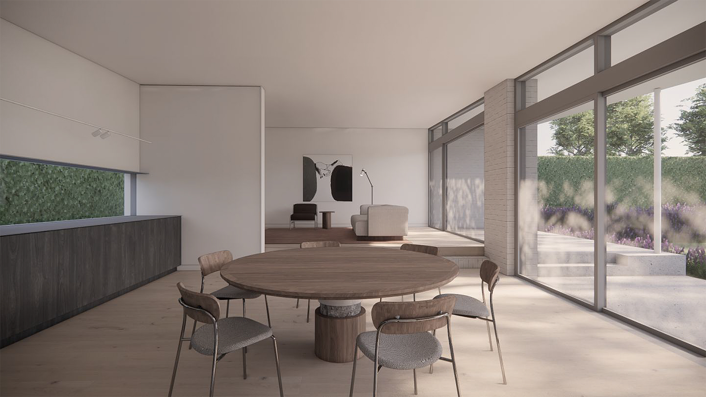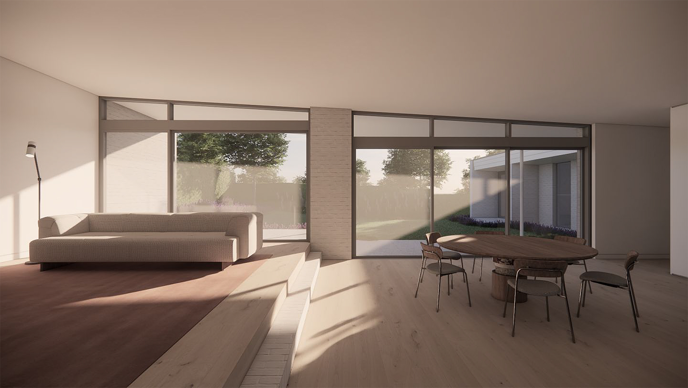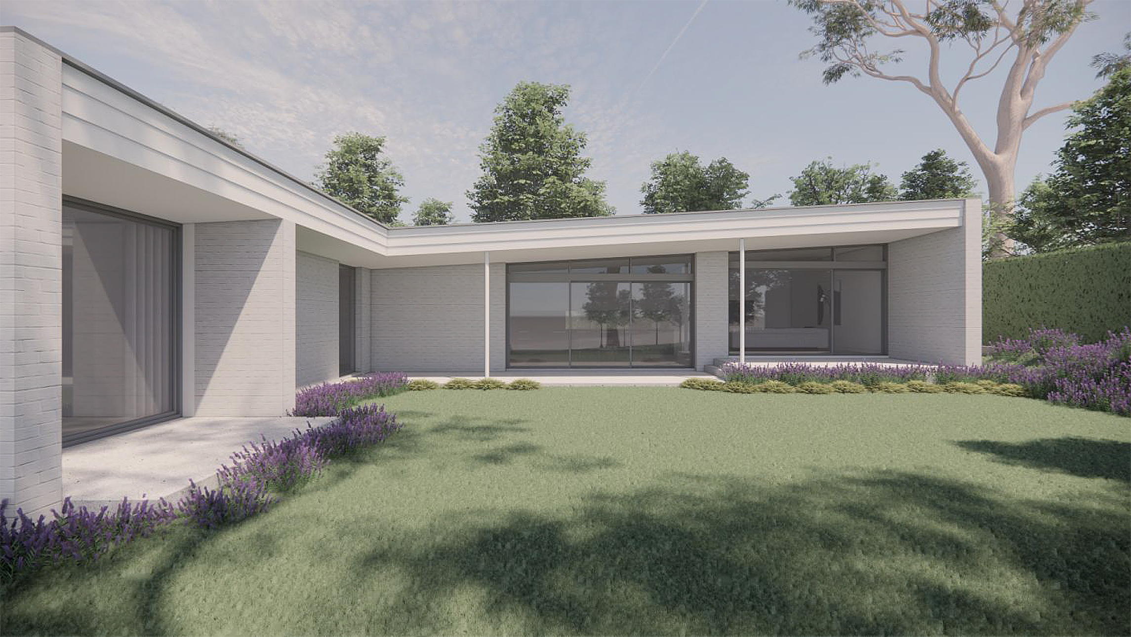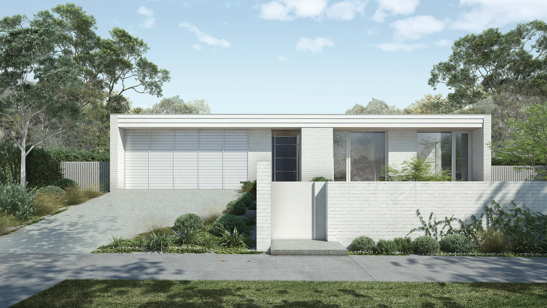 Shaped by the lay of the land, this four-bedroom home unfolds beneath a skillion roof that promotes the transition of the public spaces and split-levels. Whilst presenting as a flat roof to the front façade, the kitchen, meals and living areas are revealed underneath the raked ceiling, capturing the northern light through the increased ceiling heights, opening to garden vistas and inviting a seamless dialogue with the landscape.